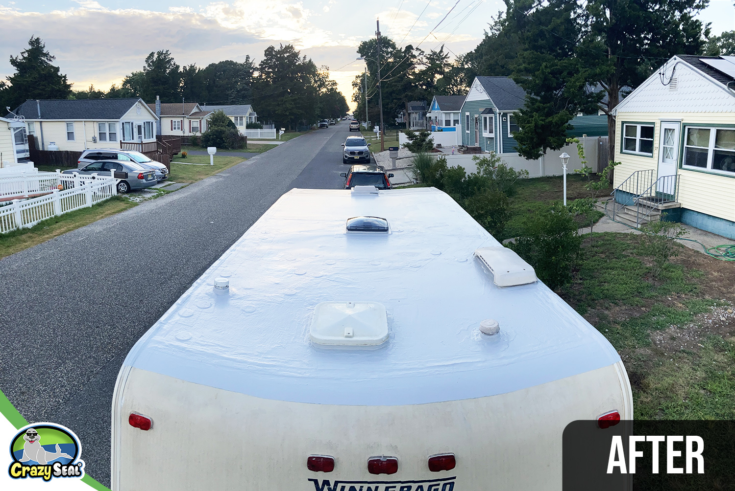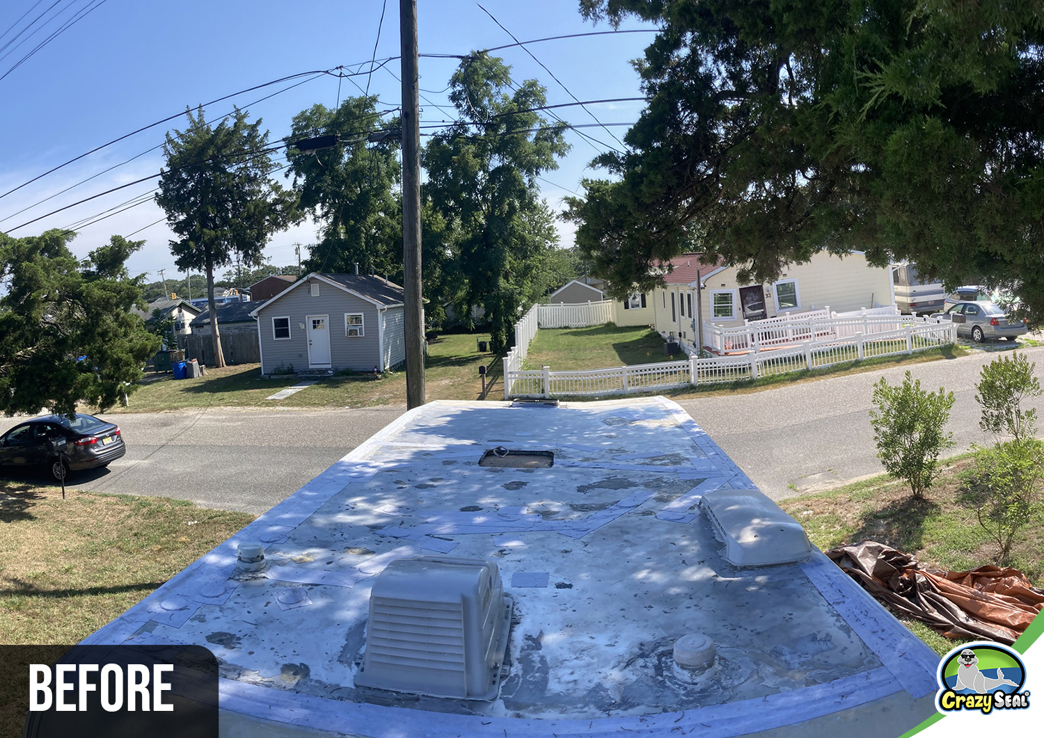 Jeremy didn’t just need a roof coating—he needed a solution tough enough to handle a patchwork of materials. With a mix of aluminum, fiberglass, and newly installed fabric tape across his RV roof, he turned to Crazy Seal for full-surface protection.